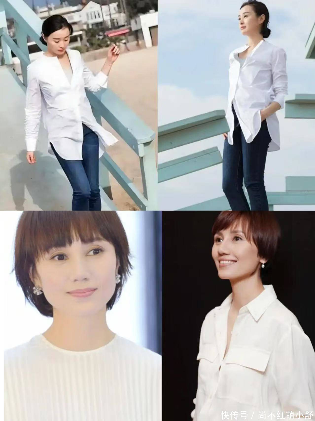 我们先看53岁的吴越从不穿得花枝招展。一袭简洁的白衬衫+牛仔裤,却比许多年轻女孩更有气场;她也常以简约干练的西装现身,那份从容自信远比强行装嫩更吸引人。