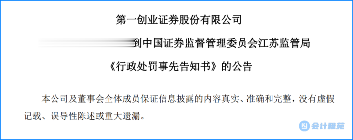 2025年12月5日,一创投行收到中国证监会江苏监管局《行政处罚事先告知书》(苏证监罚字〔2025〕21号),主要内容如下: