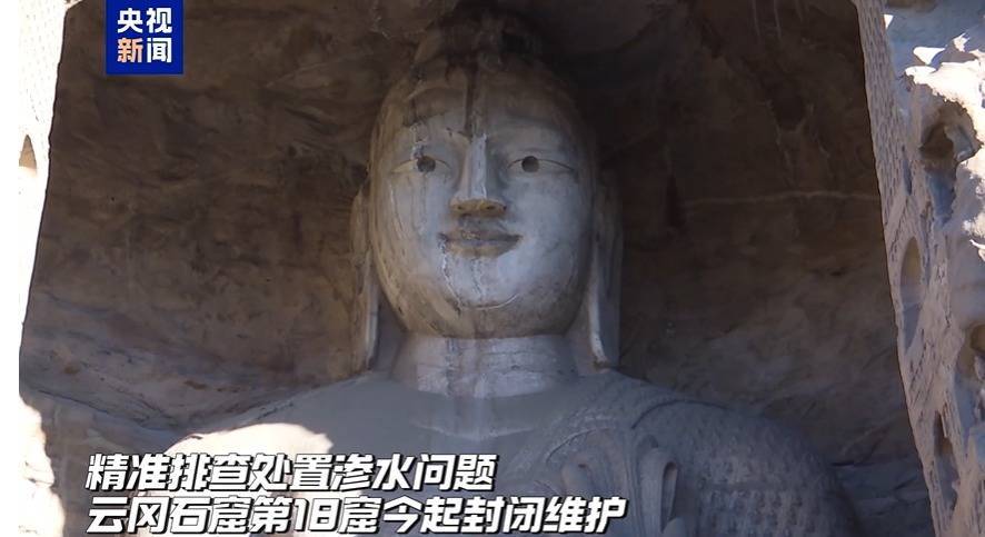 第18窟是云冈石窟艺术的经典代表作,以平面椭圆形穹窿顶为典型形制,造像呈对称布局,端庄肃穆、细腻灵动,既彰显了云冈石窟雄浑大气的艺术特质,又凝聚了北魏时期多民族艺术交融的高超水准,是研究北魏民族交融史及石窟营造技艺的重要实例,具有极高的历史、艺术与科研价值。本次第18窟封闭维护期间,云冈石窟其余区域正常开放。第18窟恢复开放时间将第一时间通过官方渠道发布。