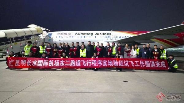 试飞工作由民航云南安全监督管理局组织开展,昆明航空负责试飞任务的具体执行,云南空管分局、云南机场集团配合做好管制指挥与机场地面保障工作。民航云南安全监督管理局聚焦重点关键,紧盯时间节点,全程推动各项任务有效落地。昆明国际航空枢纽工程建设指挥部组织昆明机场、参建单位先后顺利完成飞行程序评审、净空排查、东二跑道投产飞行校验、模拟机验证、竣工验收等相关工作,有力确保了试飞顺利开展。按照建设及投运流程,东二跑道在此次试飞成功后,将进入行业验收、机场使用手册审查、航行情报资料申报等工作环节,预计于2026年正式投用。
